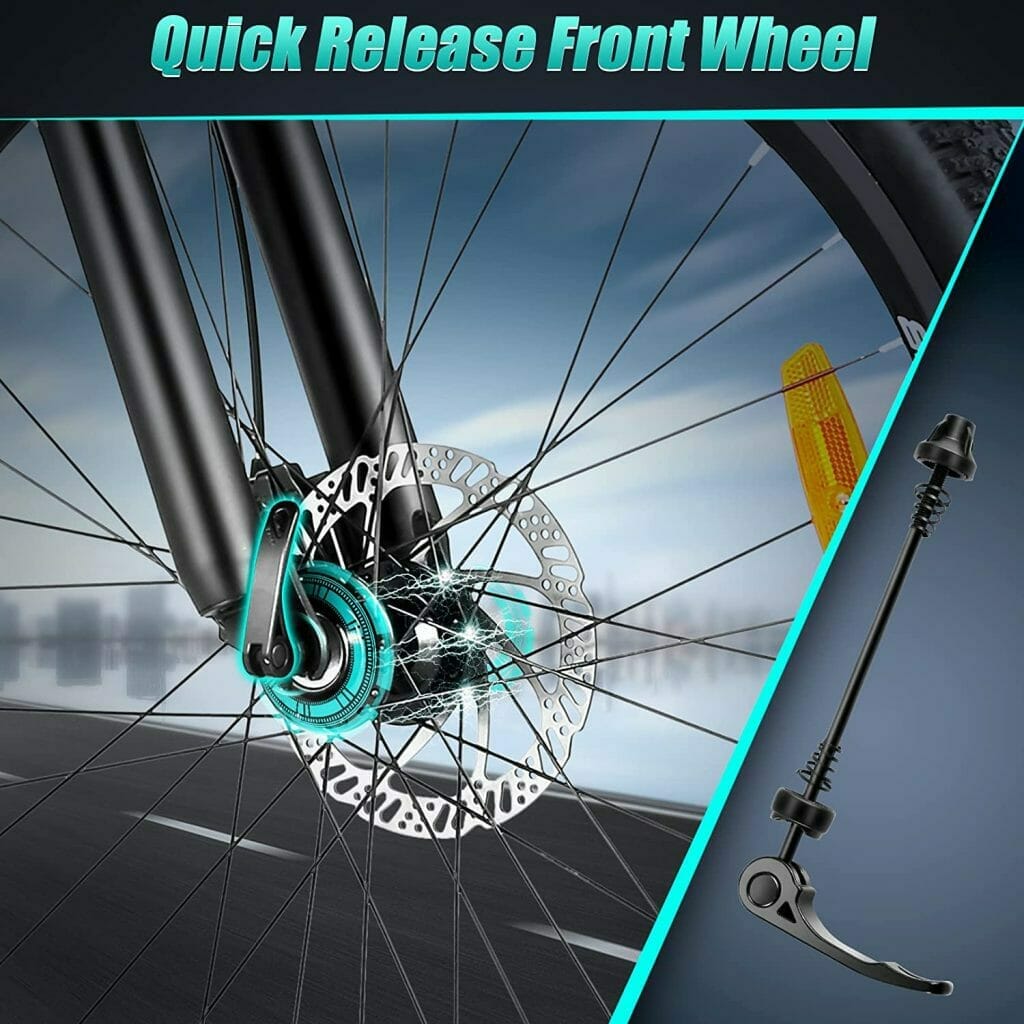 The Ancheer Electric Bike is a comfortable ride and comes with smooth handling in most riding scenarios. Whether you’re cornering at high or low speeds or sampling cruising downhill, it remains calm and responds well to your inputs. All that is possible thanks to the larger wheels, tires and the suspension fork helps dampen the ride and cushion the edge from serious impact.