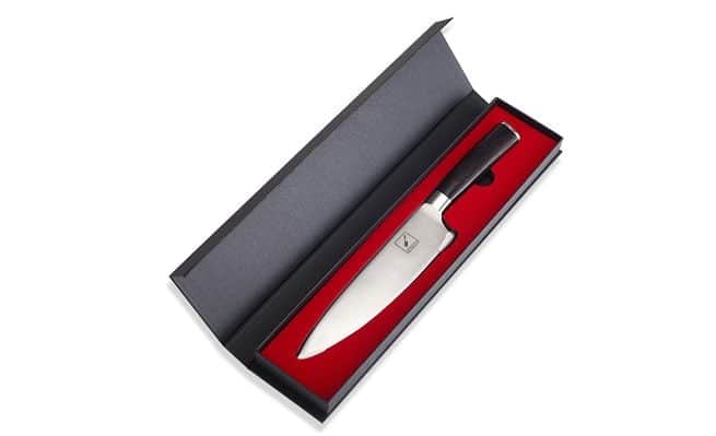 From the feel of it, this knife appears like the kind you’ll use for a few years to come before you can call for a replacement. It is made of premium materials that are resistant to damage and wear, particularly the stainless-steel sheet that can survive multiple chops and corrosion caused by acidic foods. For the handle, it is made of hardwood material that will obviously last for many years and, being resin treated makes it impervious to water that would damage it.