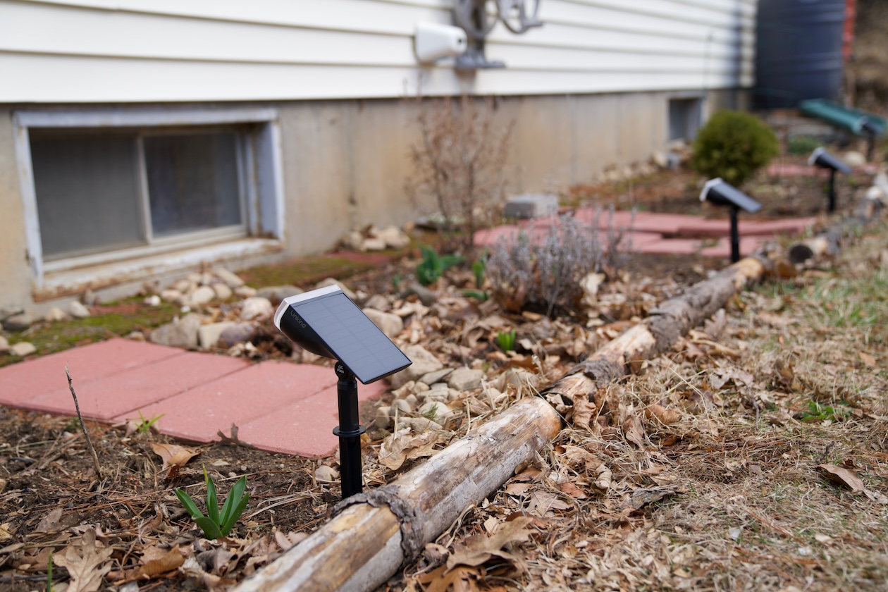 The Linkind Smart Solar Spotlight SL5C kit arrives in a package of eight lights (a package of two is also available), each featuring a laminated solar panel atop each housing. The inside of each light holds two large banks of LEDs, with the beam-focusing lens on its face. However, keep in mind these are directional spotlights, meaning they are much different from your typical ambient security flood lights.